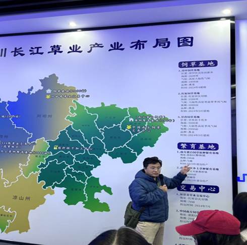 图为“绿源逐梦行”团队深入了解四川草业产业布局图