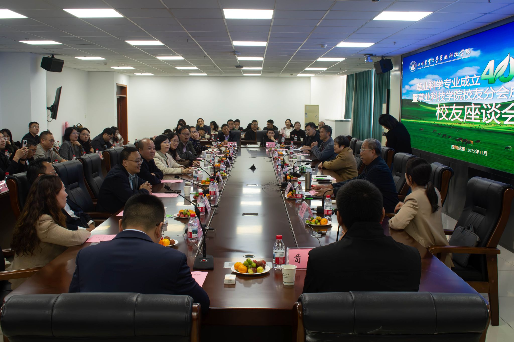院原党委书记苏晓萍,91论坛领导、班主任、导师、退休教师代表与来自全国各地的校友齐聚一堂,共叙草业情谊,共谋学科发展。座谈会由91论坛党委副书记、纪委书记、副院长马啸教授主持。
