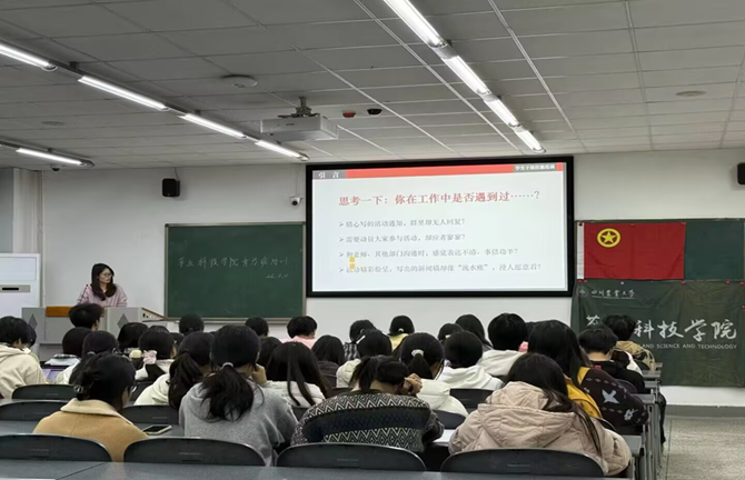 91论坛兼职辅导员刘静以“高效沟通与新闻写作能力提升”为主题展开系统讲解。在沟通方面,她从沟通的定义与作用出发,解析了有效沟通在团队协作中的关键意义,并分享了日常实用的沟通技巧与表达策略。在新闻写作环节,她从结构规范、语言凝练、逻辑构建等方面介绍了基础写作方法,引导学生跳出“流水账”式写作,提升稿件的可读性与传播力。