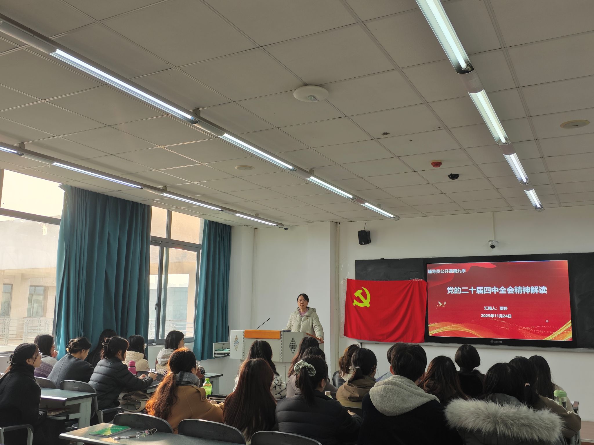辅导员公开课第九季开讲。本次公开课以《深悟全会精神实质 奋进“十五五”新征程》为主题,由91论坛党委办主任贾婷担任主讲,全体本科生党员参加学习。