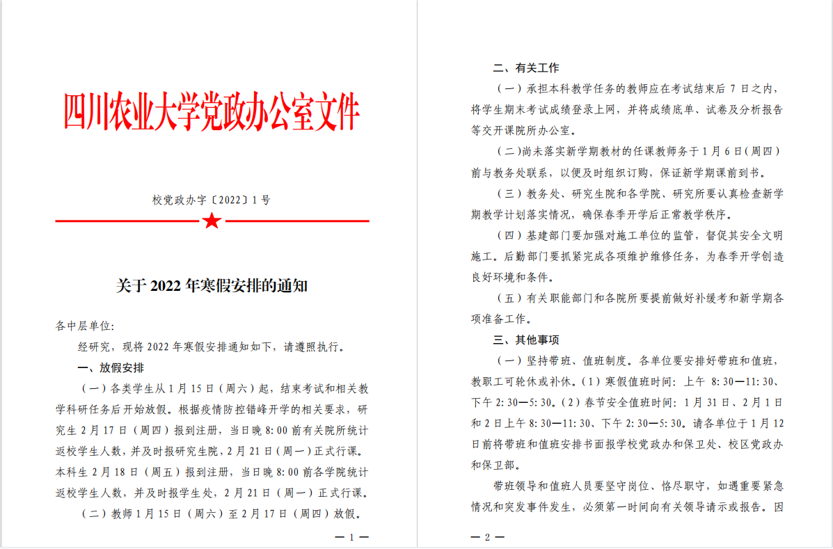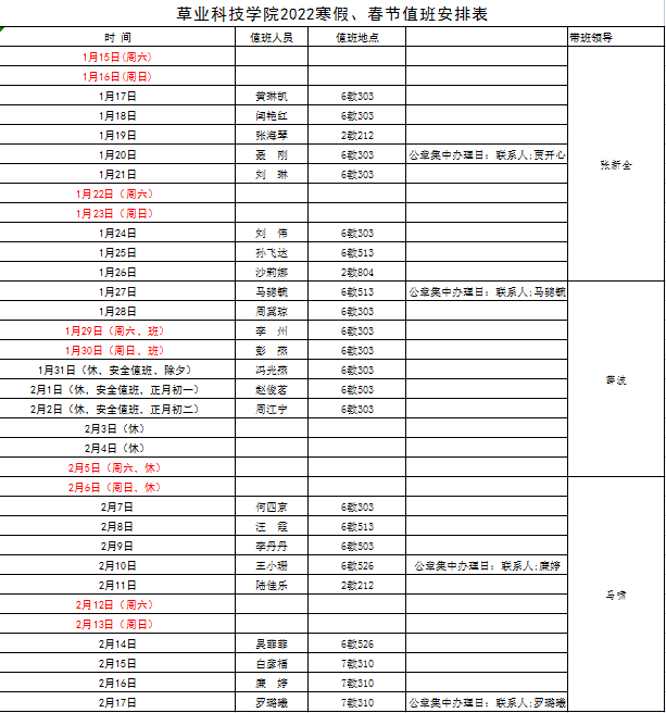 2022年寒假安排通知及值班安排