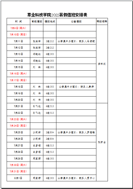2022年暑假放假通知和值班安排