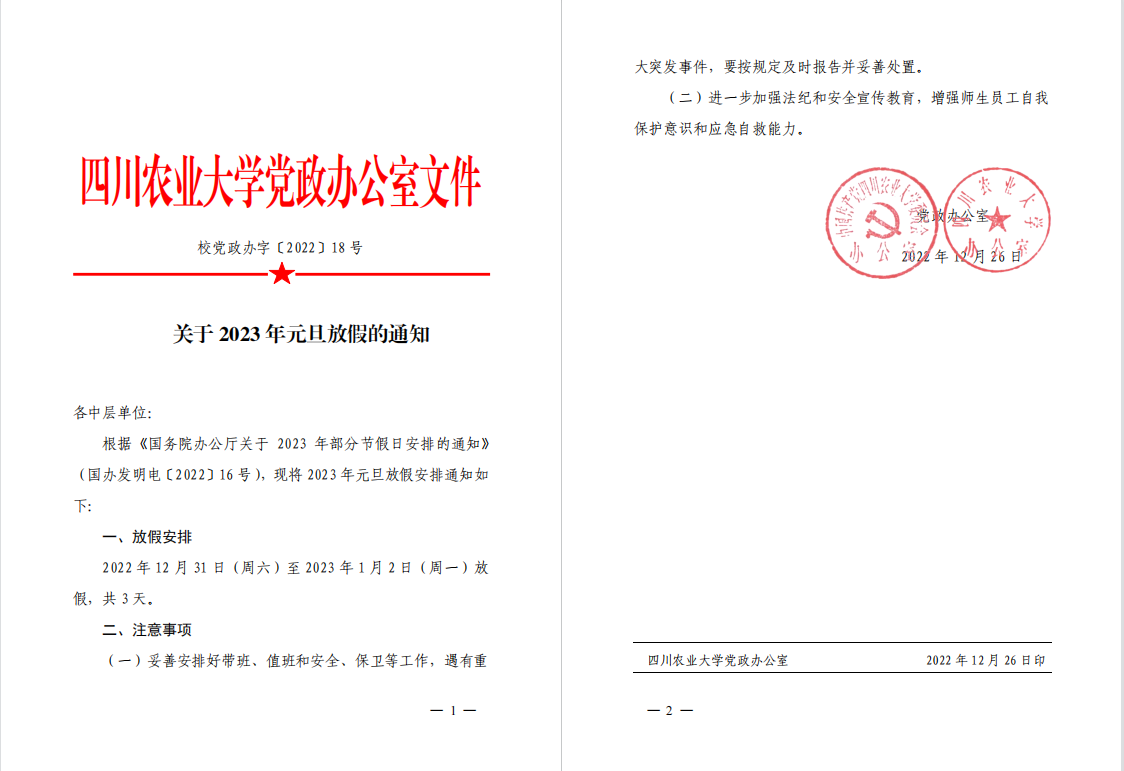 2023元旦放假及值班安排通知