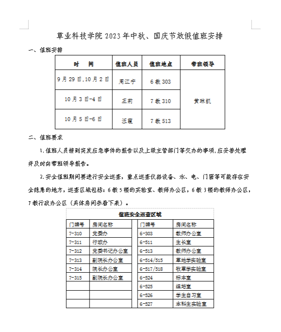 关于2023年中秋节、国庆节放假的通知及值班安排