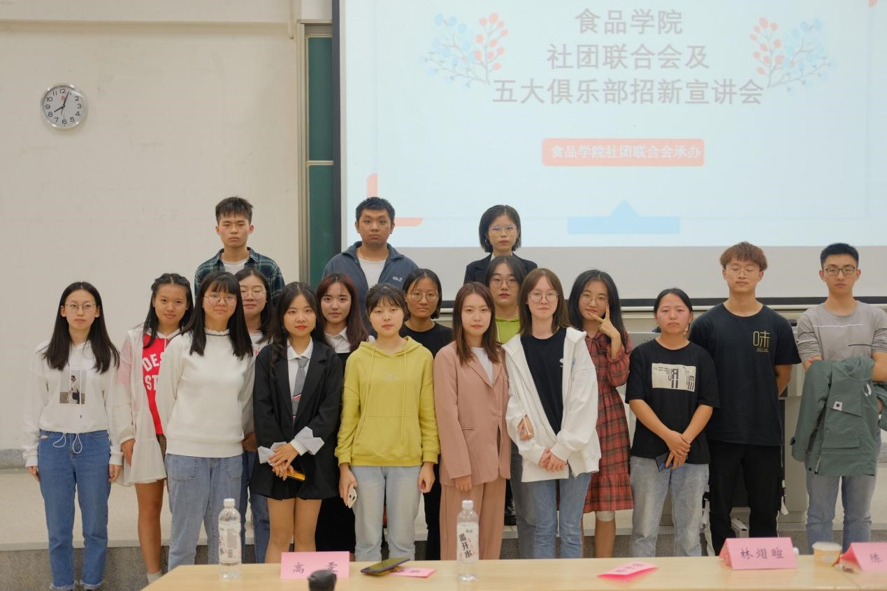 宣讲会期间,各俱乐部宣讲代表用活泼有趣的宣讲方式,让大家进一步了解不同的社团文化,并通过提问等方式调节现场气氛。与此同时,社团成员向新生们分发了俱乐部为新生制作的美味的小甜品,进一步激发大家对丰富的社团活动的兴趣。活动期间食品新生们认真听讲,礼貌有序地与俱乐部学长学姐们沟通交流,活动现场气氛十分热烈。宣讲结束后,许多新生现场报名了心仪的部门,食品社团联合会与五大俱乐部的主席、部长、宣讲人等也合影留念。
