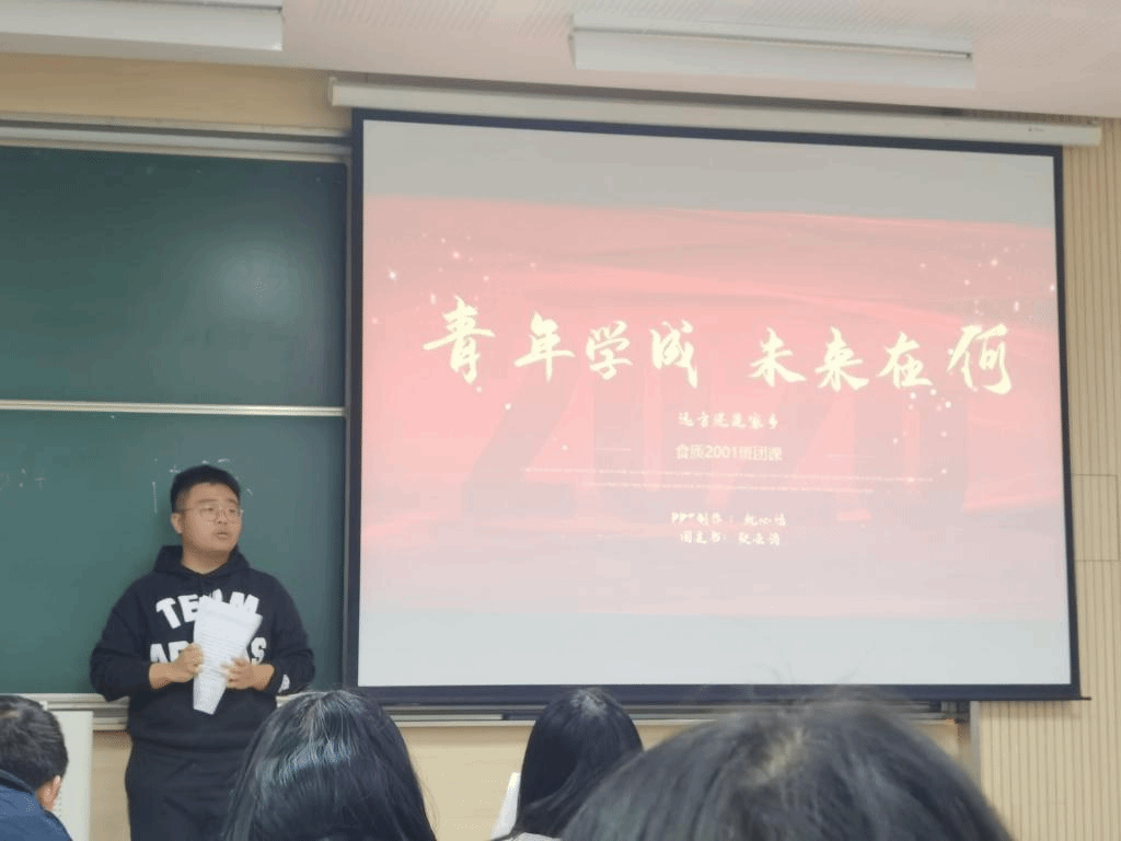 12月22日,食质2001团支部在第二教学楼2A304举行主题为“青年学成,未来在何?远方还是家乡?”的“团支书说团课”活动。年级辅导员刘鑫、高年级优秀学生喻一航、夏兴、其他班团代表以及食质2001班全体团员参加了活动。