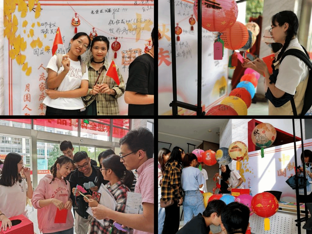双节重逢,既是祖国母亲的生日,又是阖家团圆的节日,学院大厅摆放了双节展板,紧扣爱国主义情怀,引导食品学子践行社会主义核心价值观,发扬“江南食品人,敢为天下先”的食品精神。本次活动参与人数达到三百余人,同学们写下对祖国母亲的祝愿并拍照留念,记录这一难忘时刻。