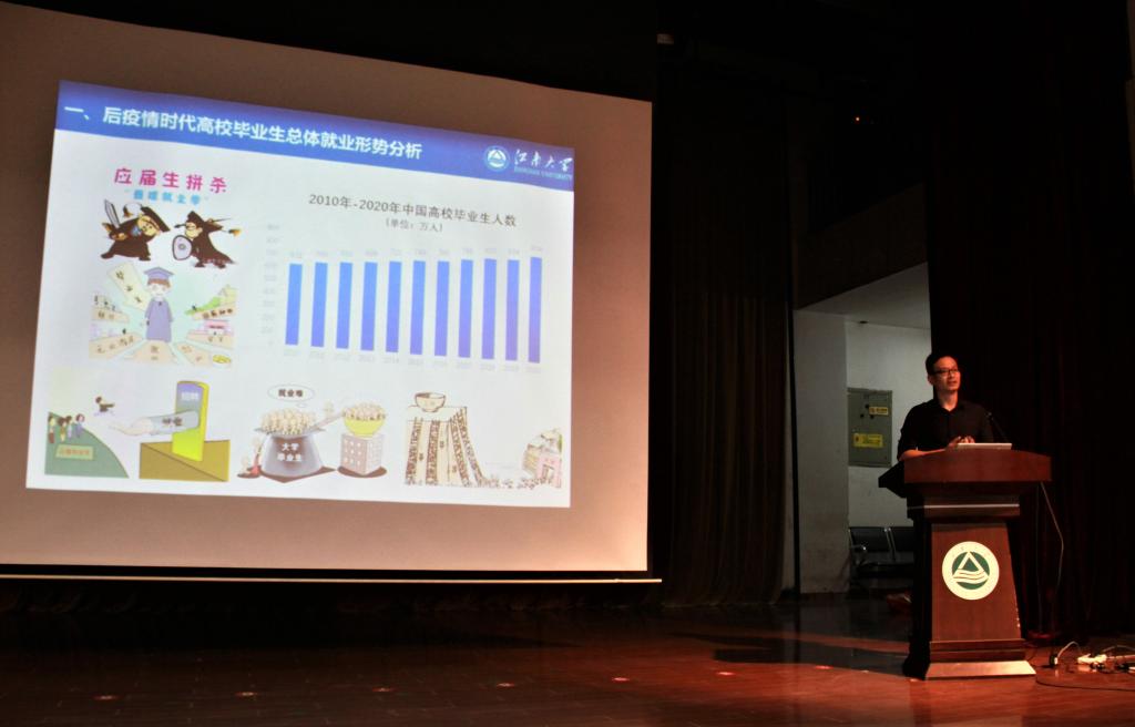 胡国顺首先深入分析了疫情后高校毕业生的就业形势、就业渠道的变化、用人单位的招聘模式变化及相关对策,他认为当前就业形势较为严峻,并主动分享了一些重要的网站和公众号平台,以便于同学们及时查找相关就业信息。