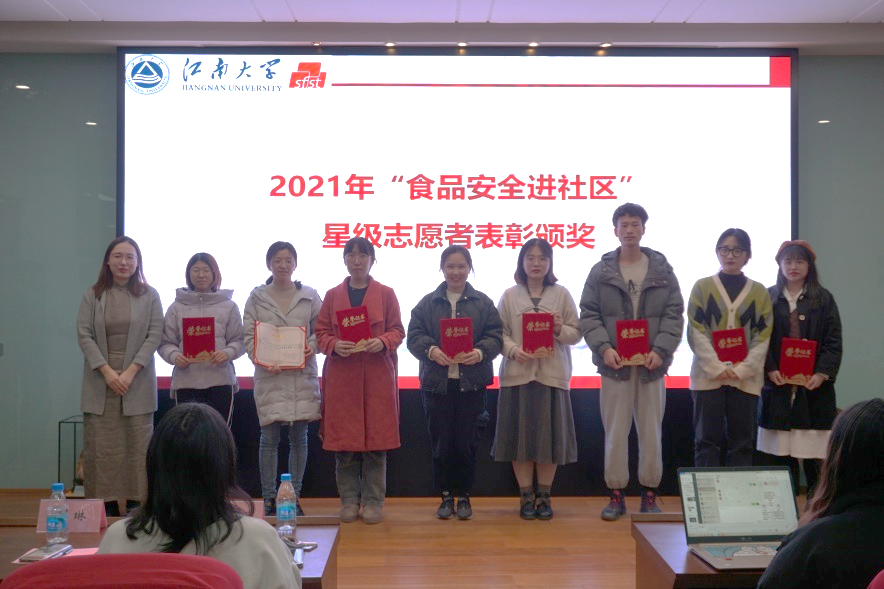 研究生会指导老师李琳,研究生会主席团成员杨忠煜、刘帆、张冰雁以及2021年度“食品安全进社区”团队志愿者参加了会议。