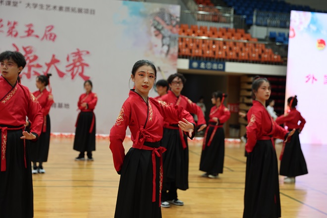 第五届戏曲广播操大赛在学校体育馆顺利举行。我院共40名同学组队参赛,从全校16支参赛队伍中脱颖而出,以均分9.6分的好成绩荣获大赛二等奖,并获得优秀编排奖。