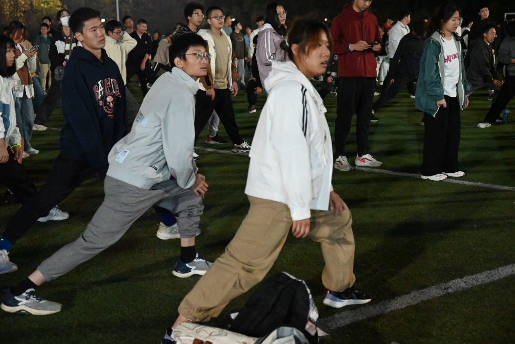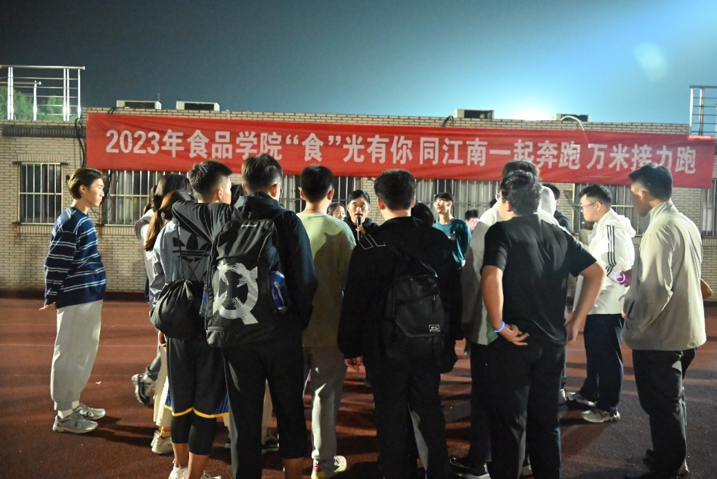 宋校能老师从专业角度出发,指导同学们进行赛前热身,为接下来的万米接力跑做好充分的准备工作及相关保护。