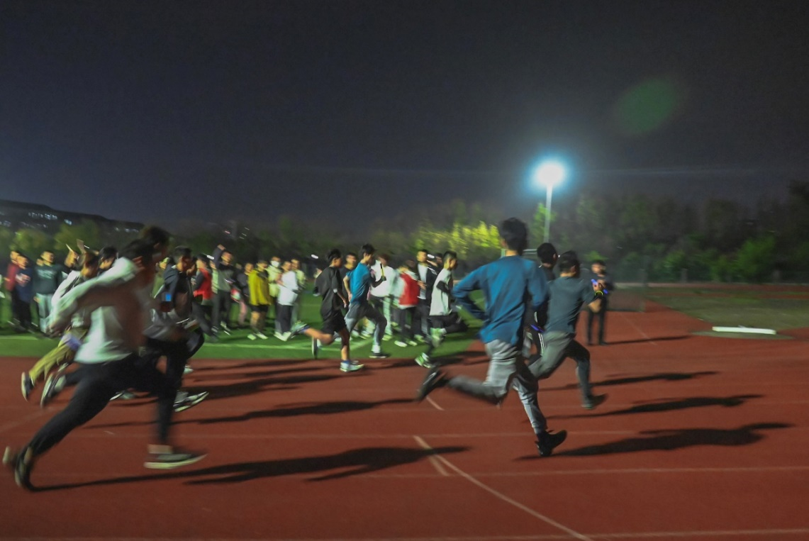 活动正式开始,各班由25人接力完成长达万米的奔跑过程。同学们们迅速进入状态,一棒接着一棒跑,操场上不断响起加油鼓励和欢呼声。其间还设置了“听歌识曲”“单人颠乒乓球”“不间断跳绳”“背夹球跑”等4个打卡点,未参与跑步的同学完成相应任务,为班级其他同学争取跑步时间,充分彰显了食品学子的团结协作。赛程步入尾声,队伍之间的距离不断拉大,但落后的同学并未因此而放弃,依然咬牙坚持到冲过终点。