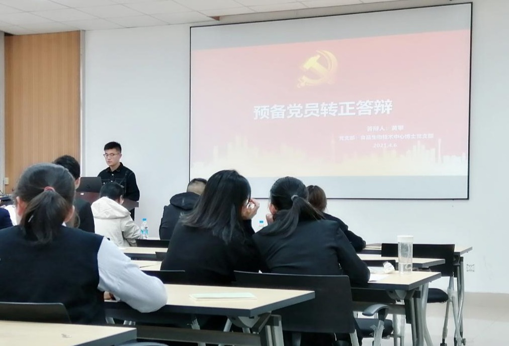 预备党员转正答辩会。学院辅导员张瑶瑶、王文燕、陈婷以及食硕1903支部书记王良哲担任答辩评委,19名预备党员参加了本次答辩会。