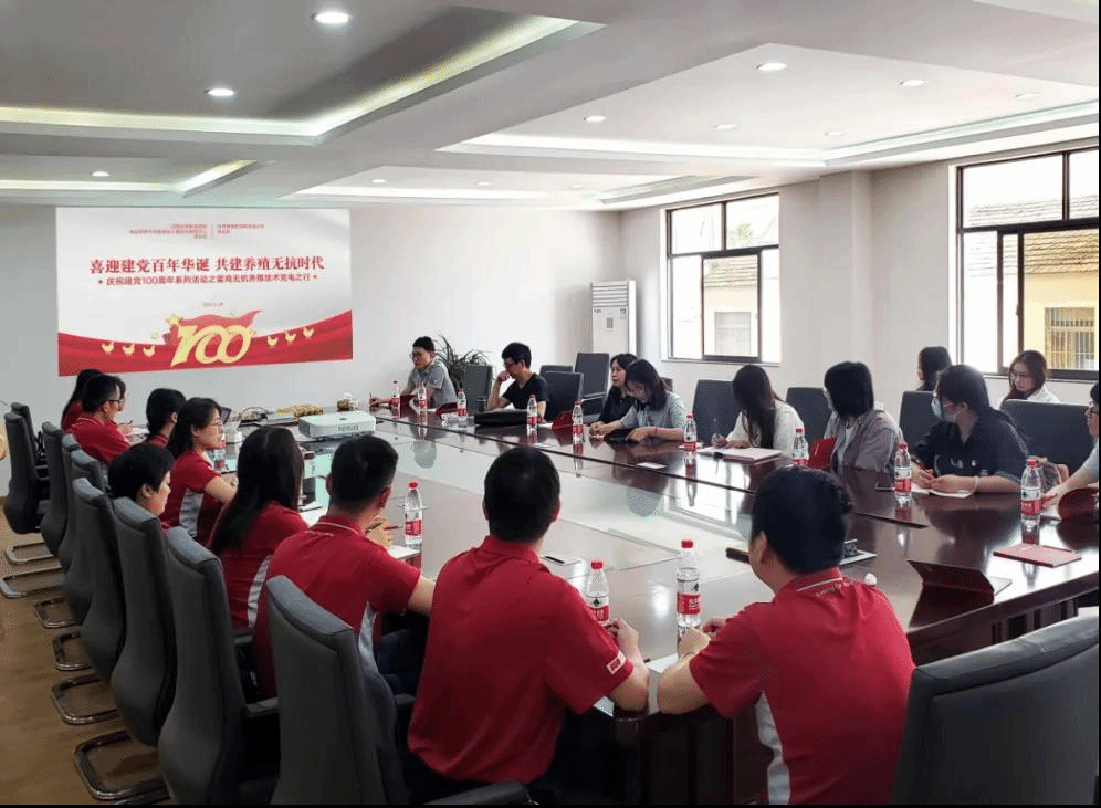 食品营养与功能食品工程技术研究中心教工、博士党支部前往南京溧水开展党日活动,与杭州康德权饲料有限公司党支部结对共建,开展“喜迎建党100周年华诞 共建养殖无抗时代”支部共建活动。