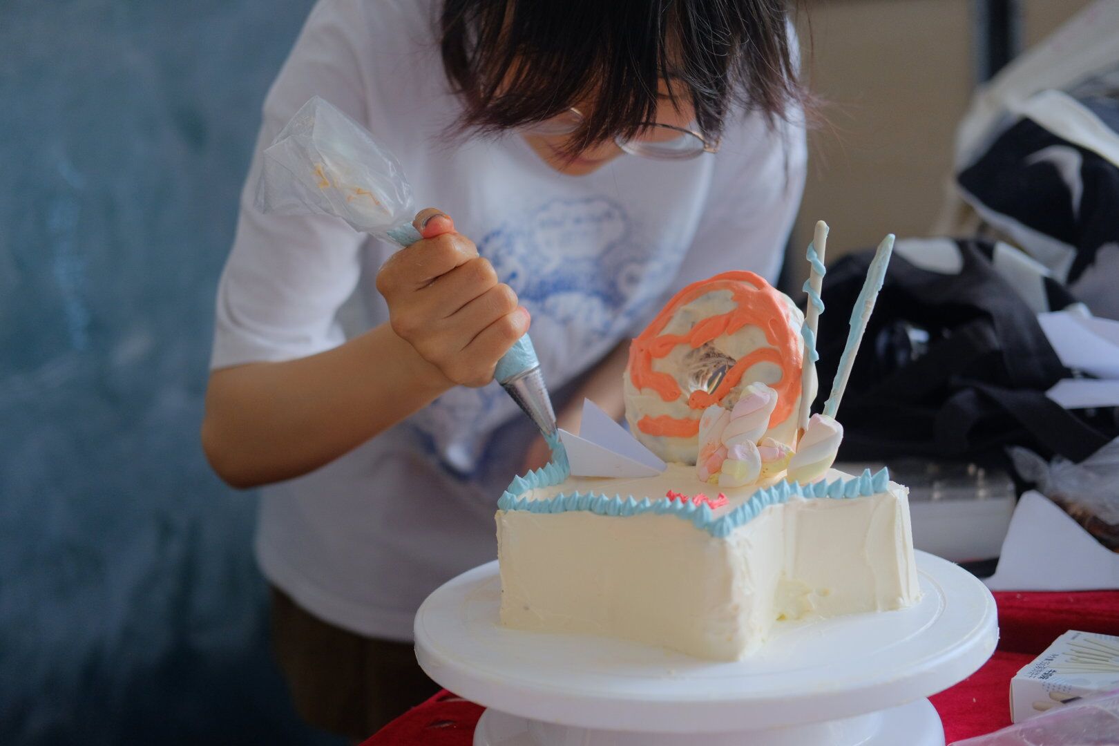 参赛选手现场裱花