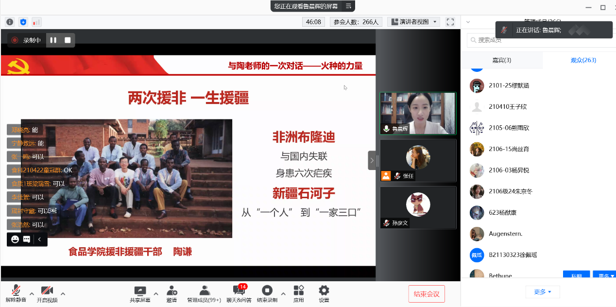 青年,是百年党史的主人公,更是新时代的主人公。本次新生入党启蒙教育通过鲁晨辉、孙彦文同志的倾情讲述,加深了同学们对党的认识,目前大部分2021级本科生已递交入党申请书,大家纷纷表示要用实际行动积极向党组织靠拢,作为新食品人,更要用青春之我逐梦新食代。