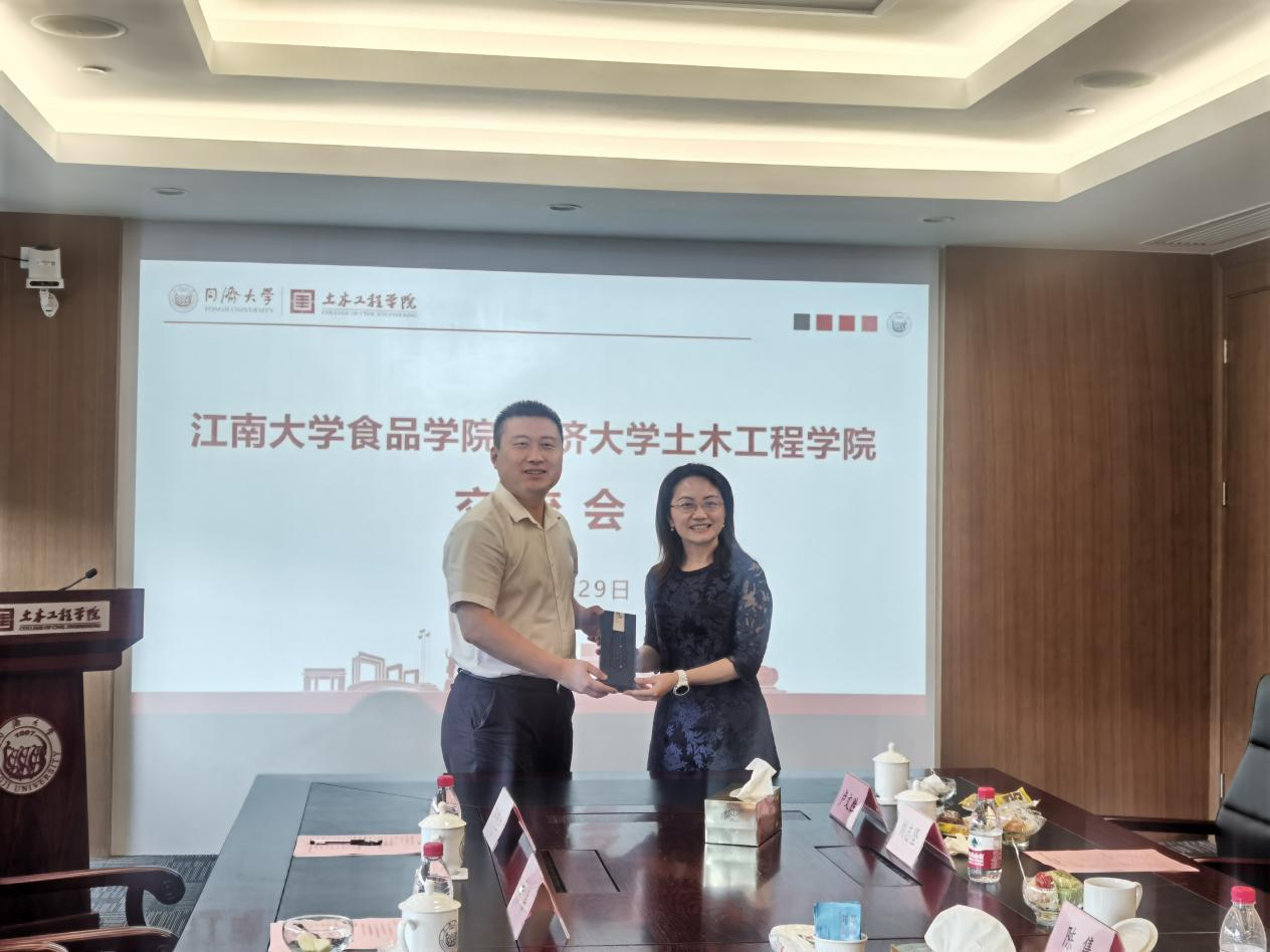 一行的到来表示热烈欢迎。她介绍了土木工程学院的发展历史和建设成就,阐释了专业系所设置、人才培养模式、国家科研平台、国际合作交流、重大科研产出等情况。她指出,新时代学科发展必须注重前沿和交叉研究,应向低碳、韧性、智能、人文发展,并不断向深海、深地、深空方向迈进。随后,双方班子成员开展了学习贯彻习近平新时代中国特色社会主义思想主题教育联学活动,就“双一流”建设、工程教育认证、高水平师资队伍建设、重大科研组织、党建思政与学生工作等方面进行了深入研讨。座谈最后,范大明院长与周颖院长互赠礼物,两院相约开展常态化沟通交流与经验互鉴。