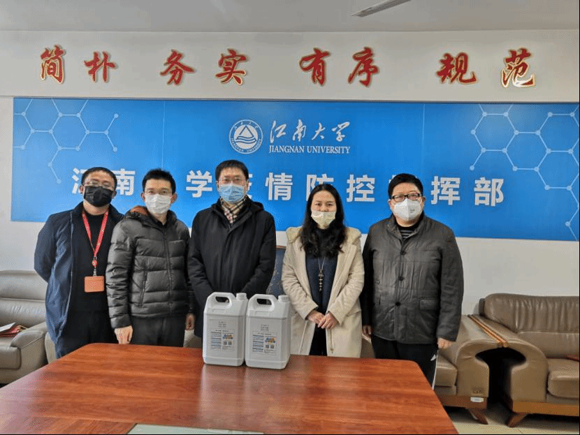 安危与共,风雨同舟。食品校友、来自布隆迪的留学生BUTOYI GABRIEL向学校捐赠1000只一次性口罩和善款1万元。无锡迅朗联大机能水技术研究院副总裁李潇潇女士捐赠一台消毒液生产设备,保障校园消毒工作顺利进行。