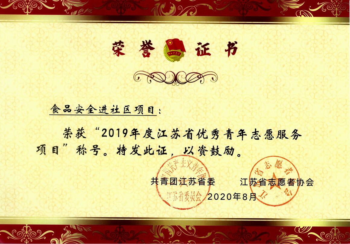 “食品安全进社区”项目荣获“2019年度江苏省优秀青年志愿服务项目”称号,为91论坛