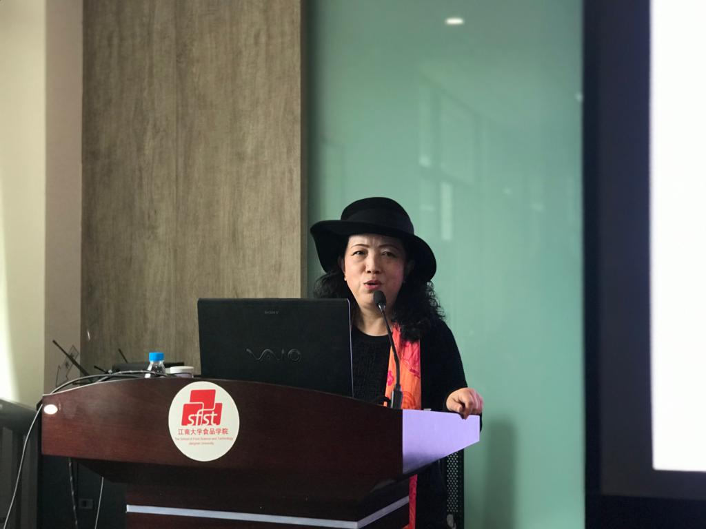 王安霞教授以《食品包装的视觉形象设计》为题,紧紧围绕“从受众体验解读设计故事”的主线,通过列举世界各地极具代表性和创新性的食品包装案例,如德国红点奖(Red Dot Award)、iF设计奖,从不同的角度为同学们阐释了食品包装的艺术同样需要与时俱进和不断创新。她认为,当今社会“设计无处不在”,包装不仅能直接反映出社会经济、科技发展水平,也能反映出人们的价值取向、消费观念、消费水平以及时代精神风貌和文化内涵。她强调,包装是一项系统的工程,逐步呈现出跨学科、跨专业、跨文化的特征。最后,王教授提出殷切的期望,她希望大家无论从事什么专业,都要用设计思维来思考,不断提升审美能力;要做“有根”的设计,在传承的基础上进行创新,做会讲中国故事的特色包装,让文化自信的种子植根于中国的食品包装上,让中国元素走上国际大舞台。