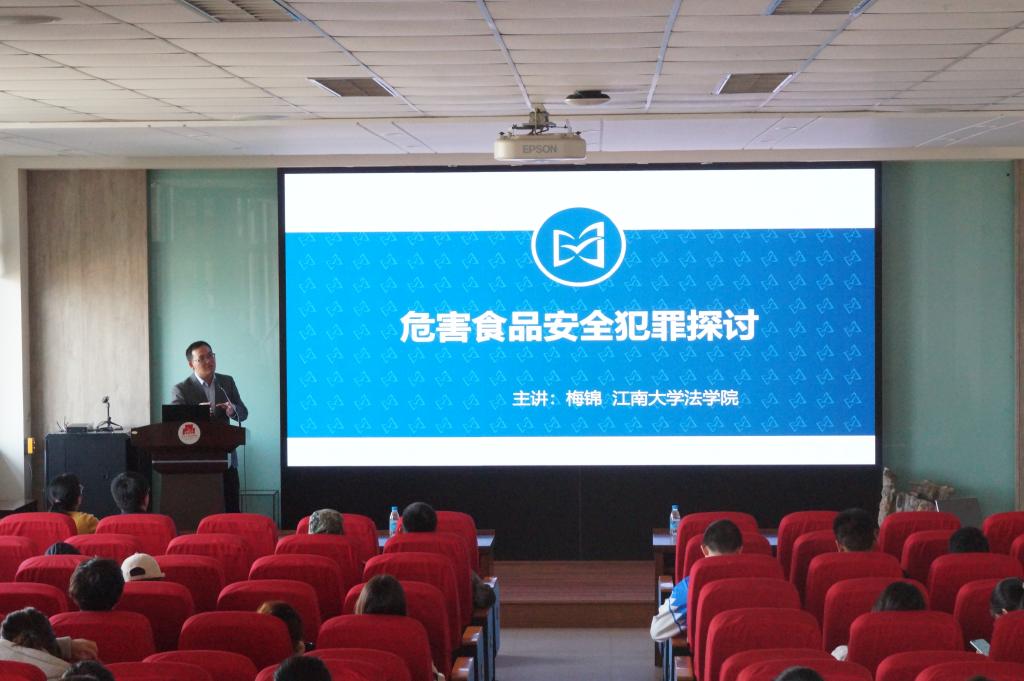 随后,梅锦老师围绕“食品安全犯罪的刑法规制与治理对策”进行了详细阐述,通俗易懂的语言和诙谐幽默的比喻,让枯燥的法律条款变得生动而鲜活。他首先介绍了食品犯罪在我国刑法中的演变,40年的从无到有,见证了我国经济的快速腾飞和社会主义法律体系顺应时代要求而不断完善。他还结合当下时政热点介绍了新时期我国食品安全犯罪的处罚现状,通过数据梳理和中外刑法对比让学生了解到世界各国对食品安全犯罪的打击正在持续升级。他提出,食品犯罪现有立法规定之不足及可能通过“积极主义刑法观”“谦抑性理论”“补充式刑事立法”等方法进一步完善相关法律措施及司法解释。梅锦老师强调,过硬的食品安全专业背景和法律知识的融合交叉,才能使执法实践更加公平公正,只有同时具有双重背景的学者才能在食品安全相关法律领域进行更加深入且持续的研究。他希望食品学子能够学法、懂法,共同探索和拓展交叉学科的边界问题和亟待解决的困难。