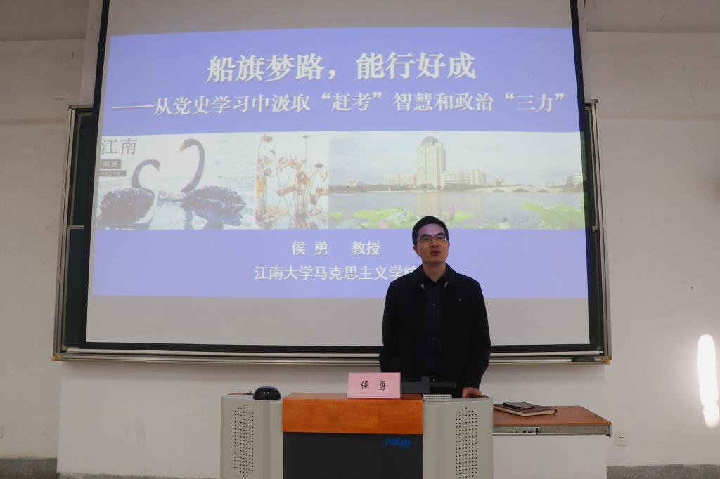 2021级本科新生转型教育系列讲座在第二教学楼A127教室顺利举行。本次活动邀请到马克思主义学院教授侯勇为新生作《船旗梦路,能行改成—从党史学习中汲取“赶考”智慧和“政治三力”》主题讲座。讲座由2021级本科生辅导员张任主持。
