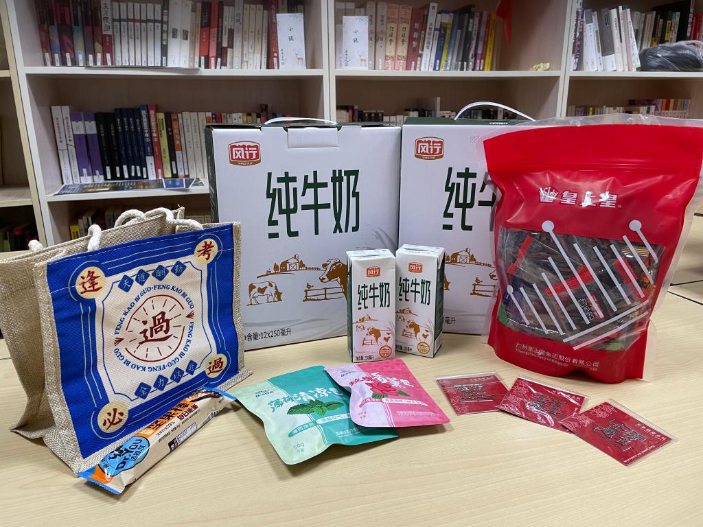 最后,魏珍吉、胡晓丹和吴爽为考研学子分发学院精心准备的定制版“考研大礼包”,印有“逢考必过”祝福语的帆布袋内装有坚果能量棒、加油书签、提神醒脑包、牛奶和肉脯,每一份慰问品都饱含着学院对考研学子的深深祝福和殷切关怀。