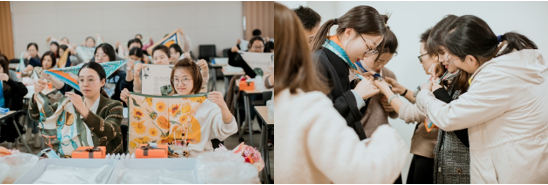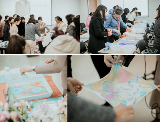 整个活动欢声笑语,一条条独特的丝巾也完美呈现。通过本次活动,大家既掌握了丝巾的制作技术,又获得了独一无二的节日礼物,愉悦了心情,增进了感情,整个活动在甜美浪漫中圆满结束。