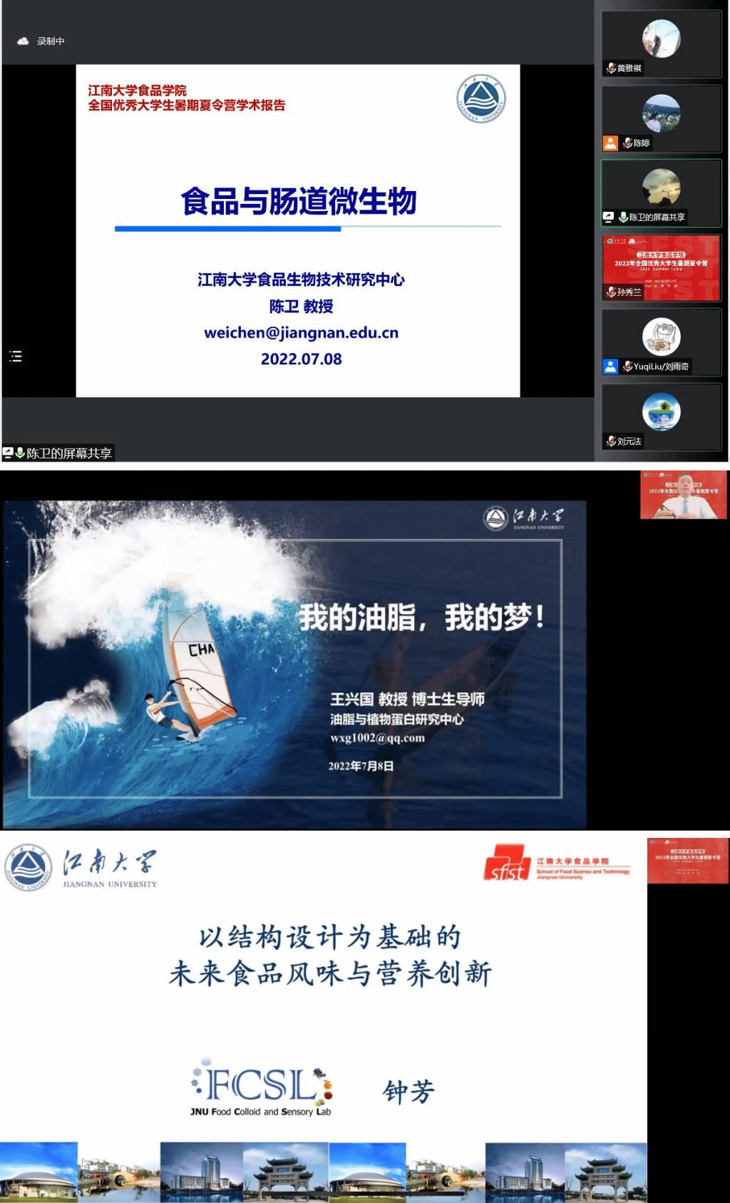 钟芳教授作《以质构设计为基础的未来食品风味与营养创新》主题报告,她从近年来食品胶体的研究成果出发,以食品质构创新实现减糖与愉悦的双重满足、呈味物质的空间不均匀分布强化味觉感知、营养元素的有效补充-微观结构设计等具体实例向大家介绍感知科学基本概念以及未来发展趋势,为营员们打开了感知科学的大门。