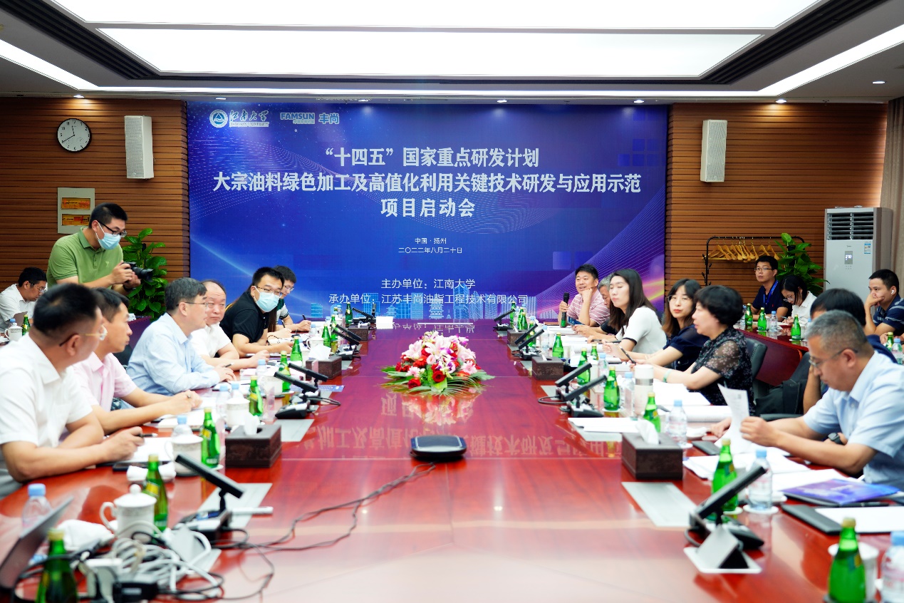 院长刘元法教授主持的“十四五”国家重点研发计划“大宗油料绿色加工及高值化利用关键技术研发与应用示范”项目启动会在江苏省扬州市以线上线下结合的方式召开。中国农村技术开发中心产业科技处副处长王静、教育部科技司项目主管赵梨利、91论坛