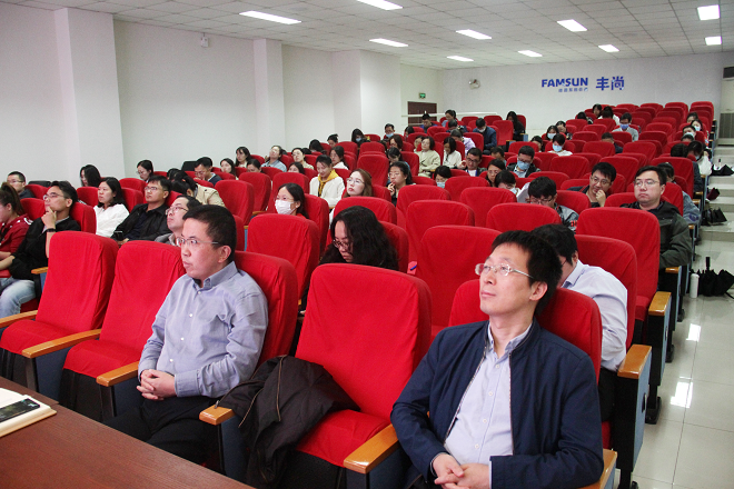发言人倪松涛作报告。学院党委委员、中心组成员、党政管理干部、辅导员、班主任、教工党支部委员、学生党支部书记听取报告。学院党委书记傅莉莉担任主持。