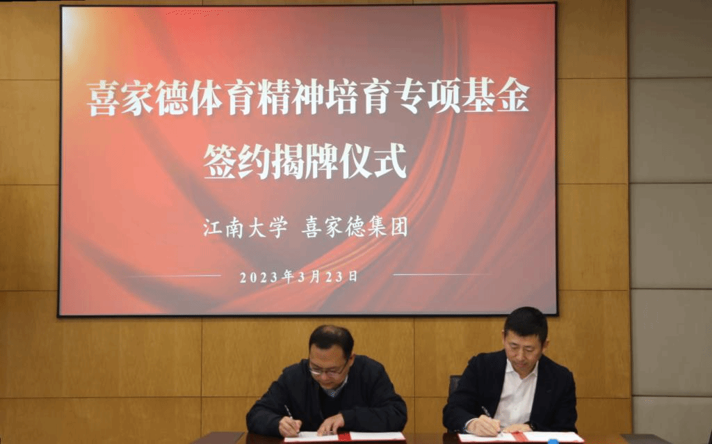 喜家德体育精神专项培育基金”揭牌。此次双方签约3年,由喜家德为食品学子提供30万元专项基金,涵盖体育精神培育等奖助育人领域。