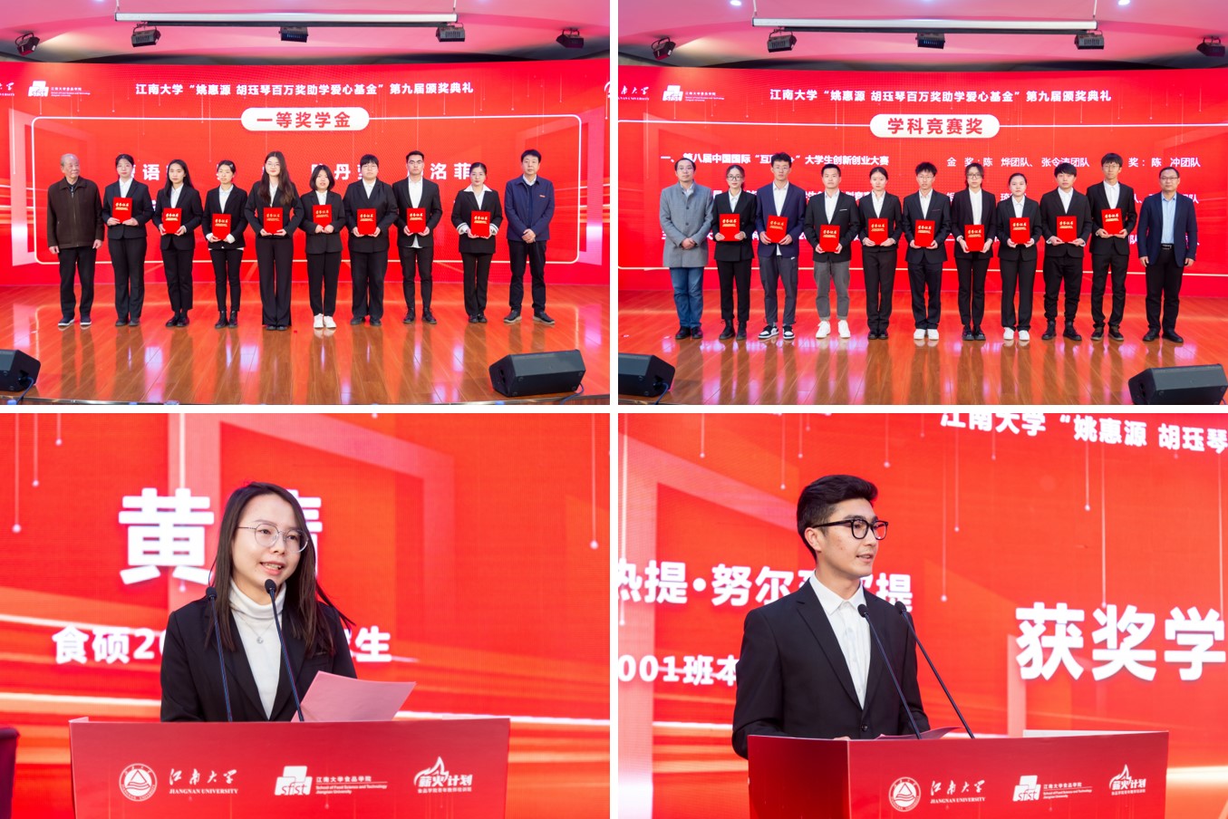 魏珍吉宣读2022年度“姚惠源∙胡珏琴百万奖助学爱心基金”获奖名单。共有36人获奖学金,40人获助学金,48支团队获学科竞赛奖励,奖助总金额超40万元。在场嘉宾为124名荣获奖助的同学分批次颁发荣誉证书。2021级硕士生黄晴、2020级本科生艾力木热提·努尔买买提作为学生代表先后发言,感恩姚惠源教授的大爱无私,感谢全体捐赠人的厚爱与期望。