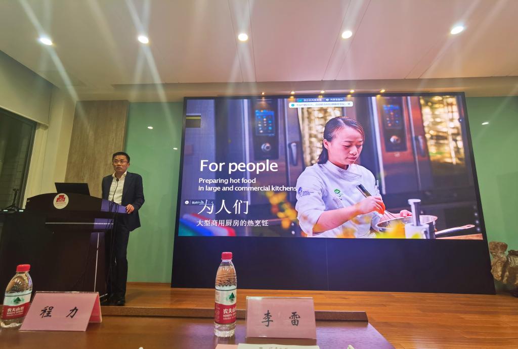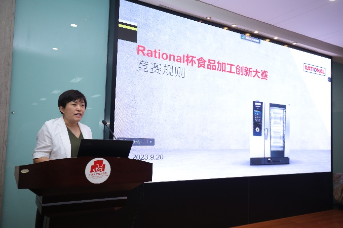 2万名校友中的一员,详细解读了大赛的主题、宗旨、规则、流程、奖项等。她介绍道,46年烹煮研究、600多项专利、120多万台设备、超过50%的市场份额,使Rational成为全球专业厨房中的标准烹饪系统。她叮嘱同学们将理论知识精准转化为生产工艺和创新实践,在遵循科学规律、洞悉市场风向、发挥创意灵感的基础上设计出兼具创新性、营养性、商业可行性的全链条作品。