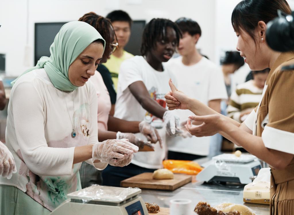 五大俱乐部指导下,由中外师生亲手制作了清香五仁、咸香肉松、冰激凌莲蓉、巧克力留心和芋泥奶酪五种口味的月饼。红色玉兔作为礼盒主体,彰显中秋节日主题,“月满江南",寄托了对每一位江南师生最真挚的节日祝福!