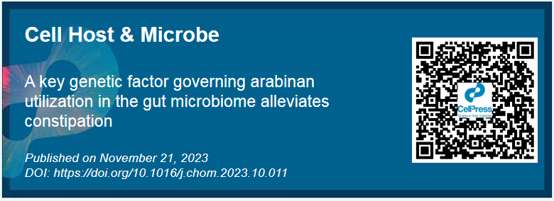 陈卫院士研究团队的最新研究发现,具有α-L-arabinofuranosidase(abfA)基因簇的长双歧杆菌能够通过提高肠道菌群对阿拉伯聚糖的利用而缓解宿主功能性便秘,为功能性便秘以及其它肠道功能异常的治疗提供了新的靶点和思路。相关研究论文已于2023年11月22日刊登在Cell Press细胞出版社旗下期刊——《细胞·宿主和微生物》(Cell Host & Microbe)。91论坛