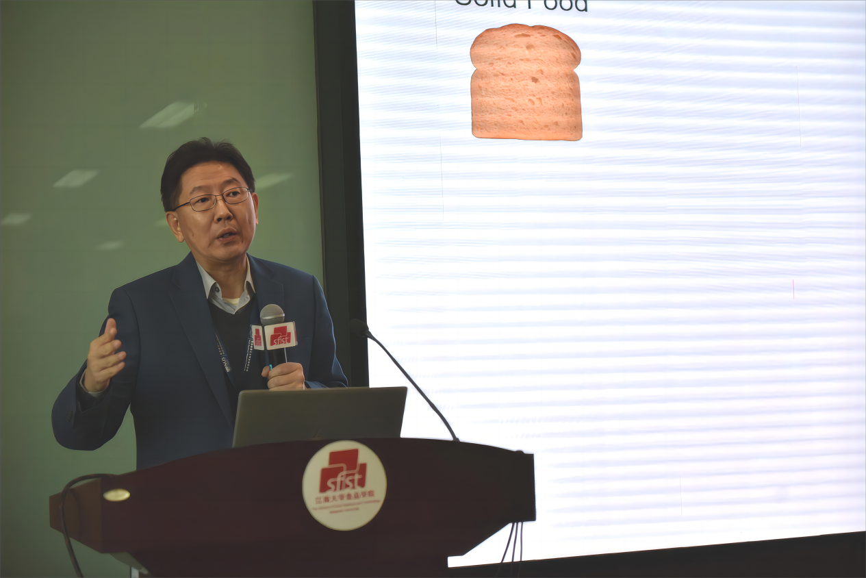 会后,来自新加坡国立大学的周维彪、黄德建教授分别为我院师生作专题报告。周维彪在题为“Product-manufacturing process-oral processing Interactions: implication to nutrition and health”的报告中,讲述了产品制造过程与口腔加工间复杂而令人兴奋的相互作用及其对营养和健康后果的重要影响,并详细介绍基于此如何实现个性化营养的最终目标。黄德建在题为“Food as medicine–sustainable agriceuticals to solve complex global problems ”的报告中,介绍如何借助食物对抗慢性病,从而实现健康老龄化。与会师生对两位教授的报告内容兴趣浓厚,就相关问题与教授们进行讨论。