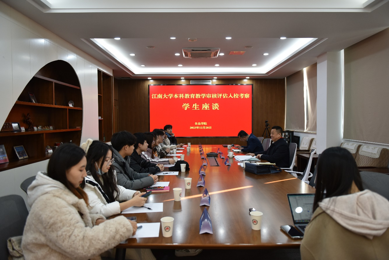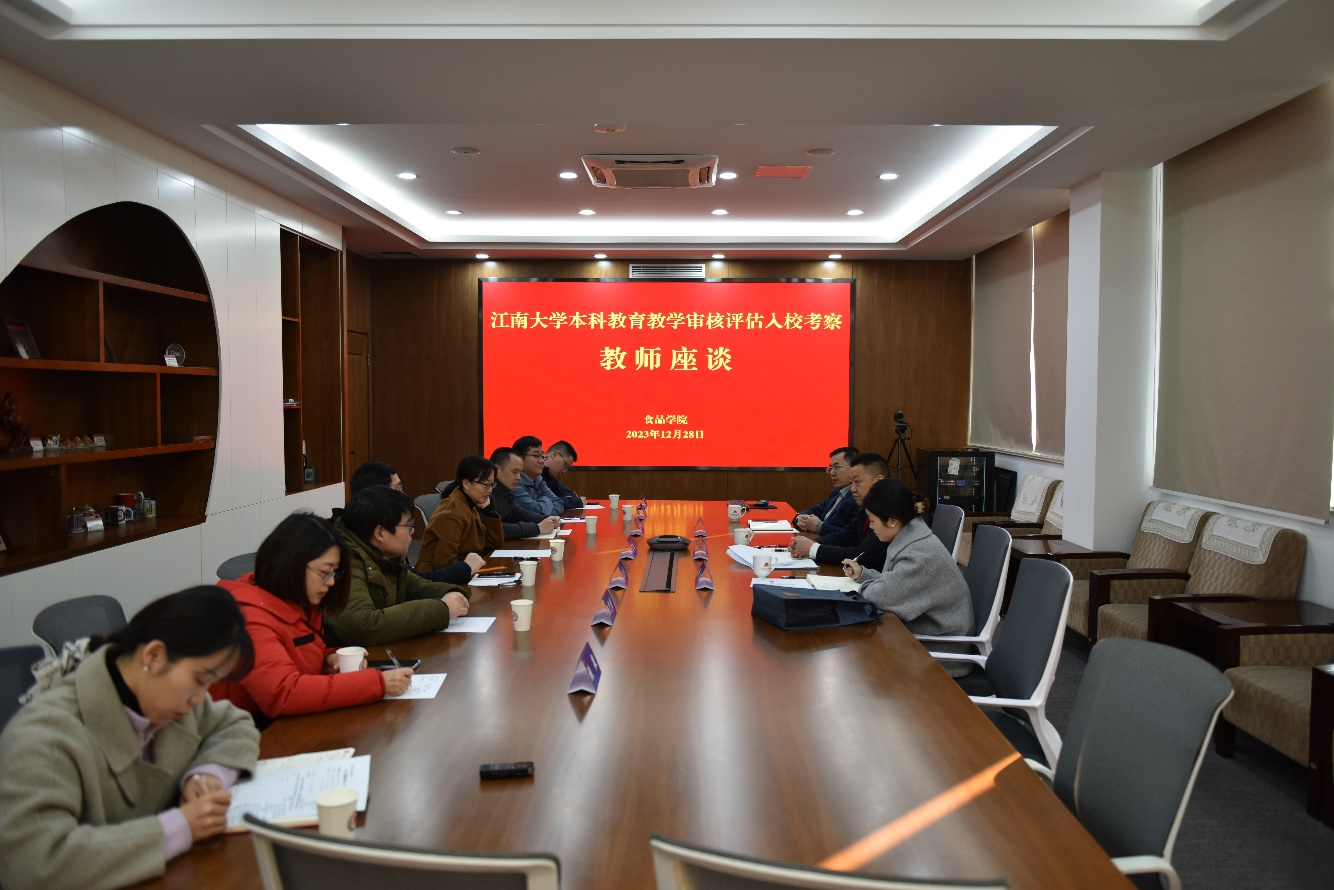 27日上午,专家组在校、院领导陪同下参观食品学科史馆。组长、合肥工业大学校长郑磊,西南大学党委常委、副校长赵国华分别在学院领导陪同下参观食品发酵国家级实验教学示范中心、国家功能食品工程技术研究中心,并围绕教学实验室平台管理机制、本科教育教学支撑情况、本科生自主创新实践等话题充分交流。当天下午,学院教授卢蓉蓉、华霄在行政楼B306会议室参与专家组召集的教师座谈会,就学校的办学理念、教育教学情况、学生学习状态等内容作交流发言。