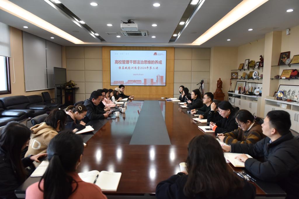 党政管理干部强基赋能训练营开办法治专题讲座。本期训练营邀请校长办公室副主任、法制工作办公室主任陆秦作题为《高校管理干部法治思维的养成》的报告。全院党政管理干部、辅导员参与本期训练营。活动由91论坛