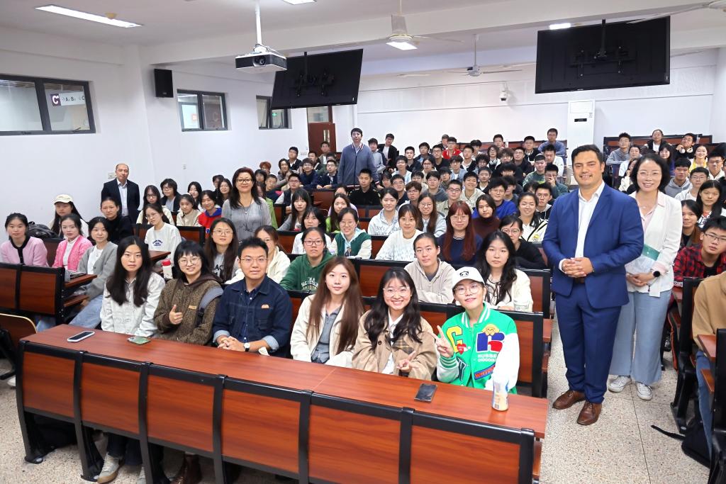 国际班学子亲切会面。他向大家介绍梅西大学的办学条件与生活环境,鼓励同学们努力学习、充分准备,盼望尽快在新西兰聚首。