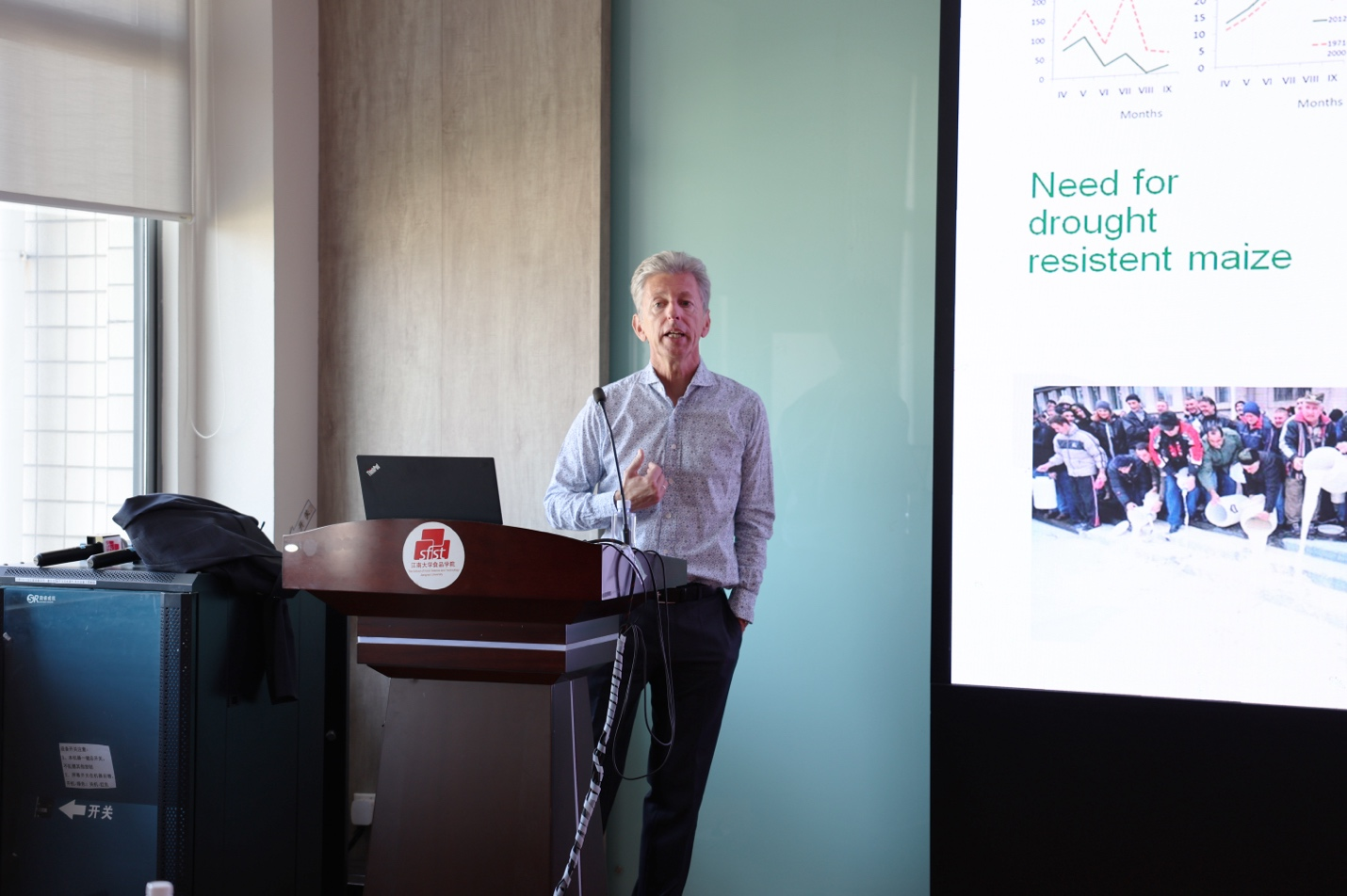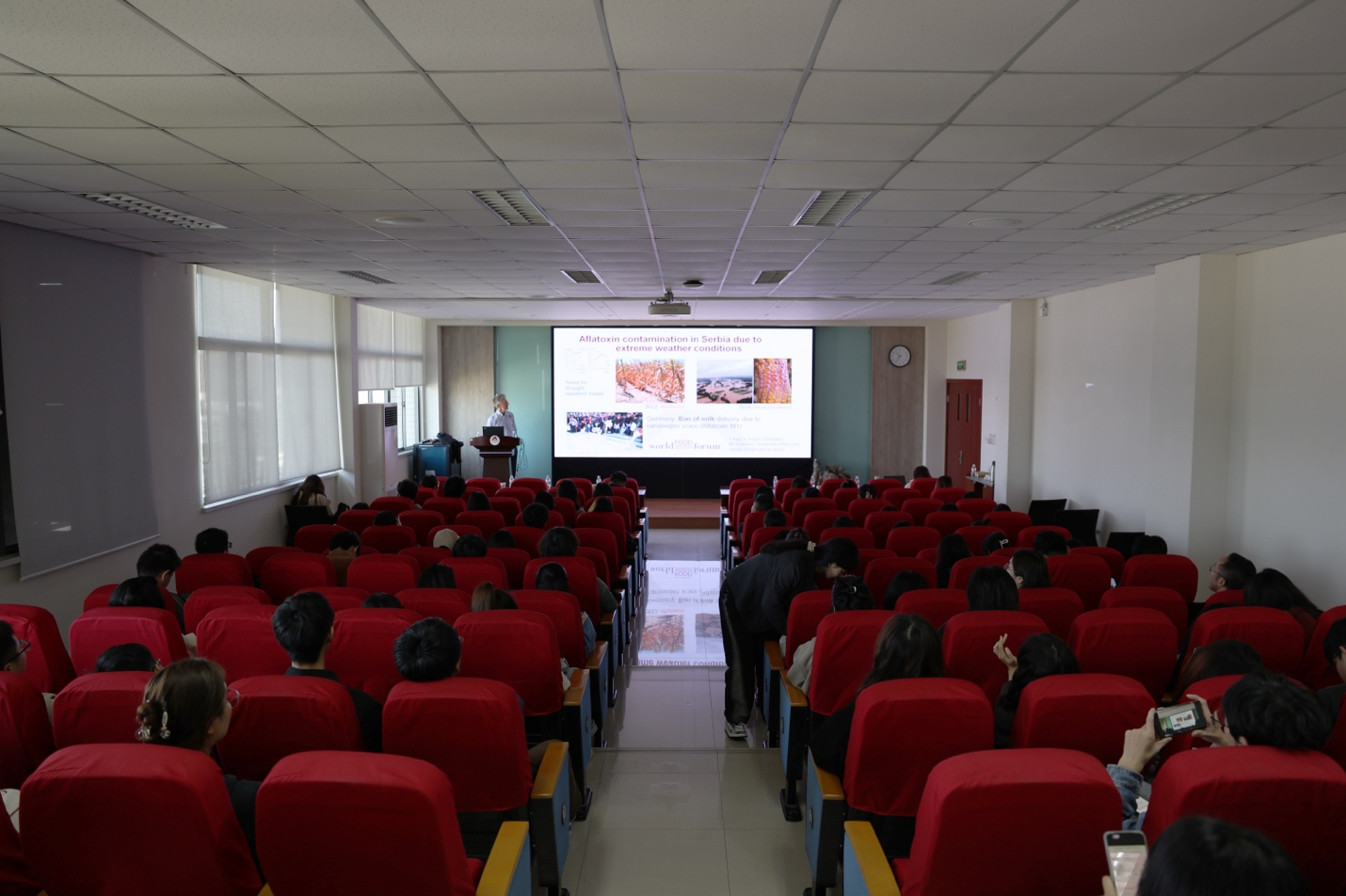 会前,Rudolf Krska作题为《Identification and quantification of emerging mycotoxins - in view of climate change》的学术报告。他详细介绍气候变化与真菌毒素污染、真菌毒素的检测与预测预警以及未来研究趋势等方面,并就同学们关于真菌毒素检测和防控等方面提出的问题耐心解答。