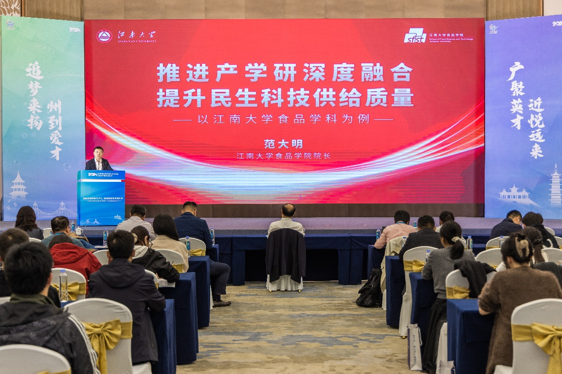 食品学科为例》的报告,江苏大学邹小波作题为《食品科学与工程学科工程化特色建设的思考与举措》的报告,南京财经大学唐培安作题为《多元协同、创新提质、赋能粮食行业新质发展》的报告,扬州大学杨振泉作题为《笃学求是、精技兴食、助力扬州美食产业高质量发展》的报告,南京工业大学胡永红作题为《面向新质生产力的食品学科建设与产学研协同》的报告,江苏科技大学鲁玉杰作题为《坚守“粮”心拓创新 “食”慧筑梦谋发展》的报告,盐城工学院余晓红作题为《面向地方食品产业的应用型人才培养创新与实践》的报告,江苏海洋大学盘赛昆作题为《“标准引领、科教双驱、产教联动”的食品科学与工程一流人才培养模式的探索与实践》的报告。各位报告专家畅所欲言,从多个角度探讨了食品学科建设和人才培养的特色举措。