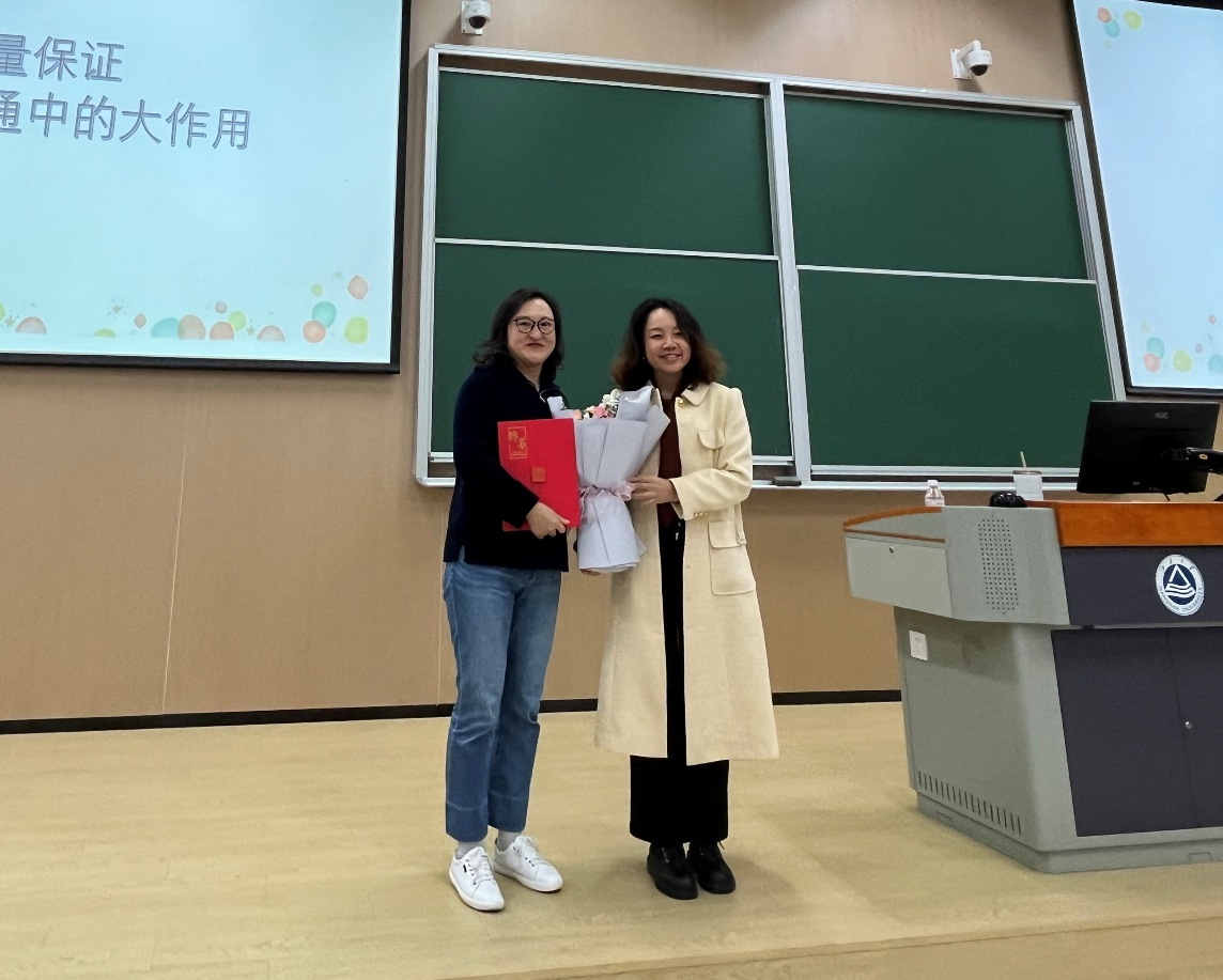 朱海晏结合自身经历与课堂互动,生动讲解质量保证的重要性,通过对食品产业链包括上游原材料供应、中游食品生产和加工、下游销售消费的分析,深入剖析影响产品的多项质量因素,并结合315晚会的案例阐述食安法在质量保证中的强力支撑作用。此外,她还针对人才需求提出建议,指出未来的岗位匹配会更加注重多技能的“复合”力,良好的沟通谈判能力也是不可或缺的成长发展条件。
