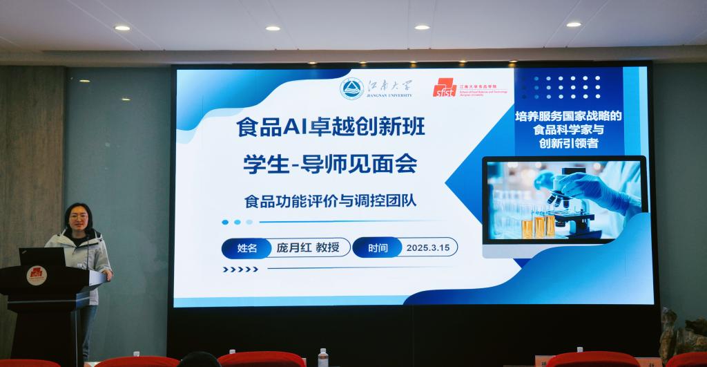 副院长谢云飞、人工智能与计算机学院讲师王锐、创新班全体导师与学生等参与活动。谢云飞担任主持人。本次双选会旨在为该班学生与导师搭建良好的沟通平台,推动食品科学与人工智能交叉学科的建设与发展。