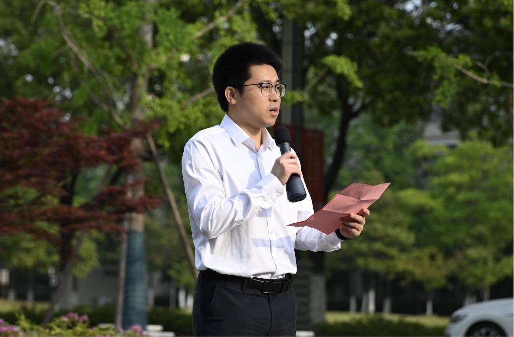无锡医学院临床2402团支部团支书李春磊作为学生代表发言,她号召团员青年们以五四精神为灯塔,以“强国有我”的信念扎根守护人民健康事业,始终牢记“健康所系性命相托”,用扎实的专业能力回应时代呼唤,用无悔的青春守护万家安康,为健康中国的建设贡献智慧和力量!
