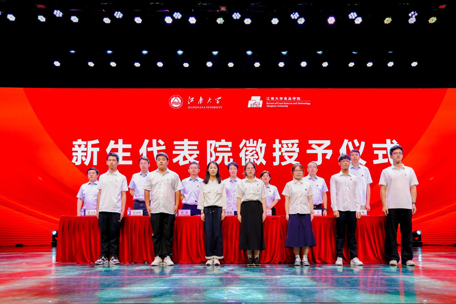 典礼现场还举行院徽授予、2025级新生班主任、副班主任聘任以及宣誓仪式,在孙秀兰院长的领誓下,全体新生庄严宣誓,“志愿投身神圣的食品事业,以良心铸良食,以人品造食品”铿锵誓言响彻会场,彰显食品学子的责任与担当。”