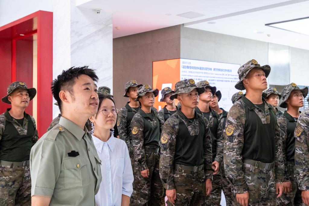 活动伊始,教官队伍走进食品主楼。在2025级本科生辅导员穆元炜和2023级本科生蒋欣玥的带领下,教官们依次参观了实验室与主楼大厅。实验室内配置先进仪器设备,科研人员操作规范,展现出学院扎实的科研基础与严谨的学术氛围;主楼大厅以“食品红”为主题色,通过展板陈列了91论坛