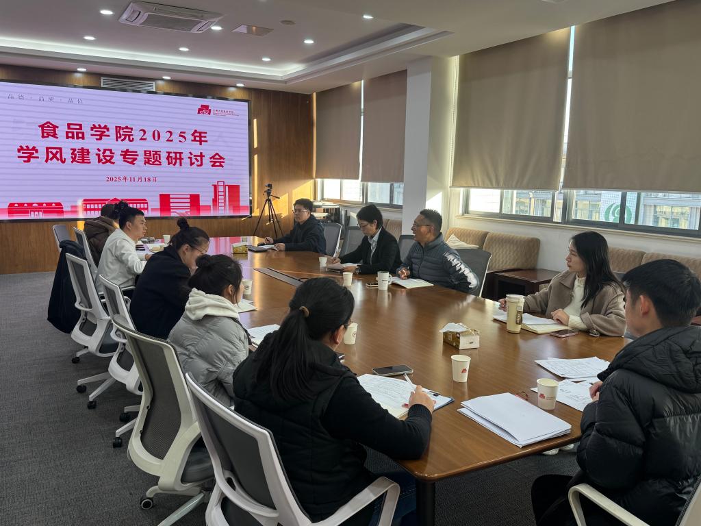于食品楼D925会议室召开学风建设专题研讨会。学院党委书记傅莉莉、党委副书记兼副院长陈勇、全体专职辅导员参加会议。会议聚焦本科生与研究生学风建设的成效梳理、问题剖析与路径优化,围绕制度保障、学生管理、学业促进等六大维度展开深入研讨,为学院学风建设明确方向、凝聚共识。本次会议由陈勇主持。