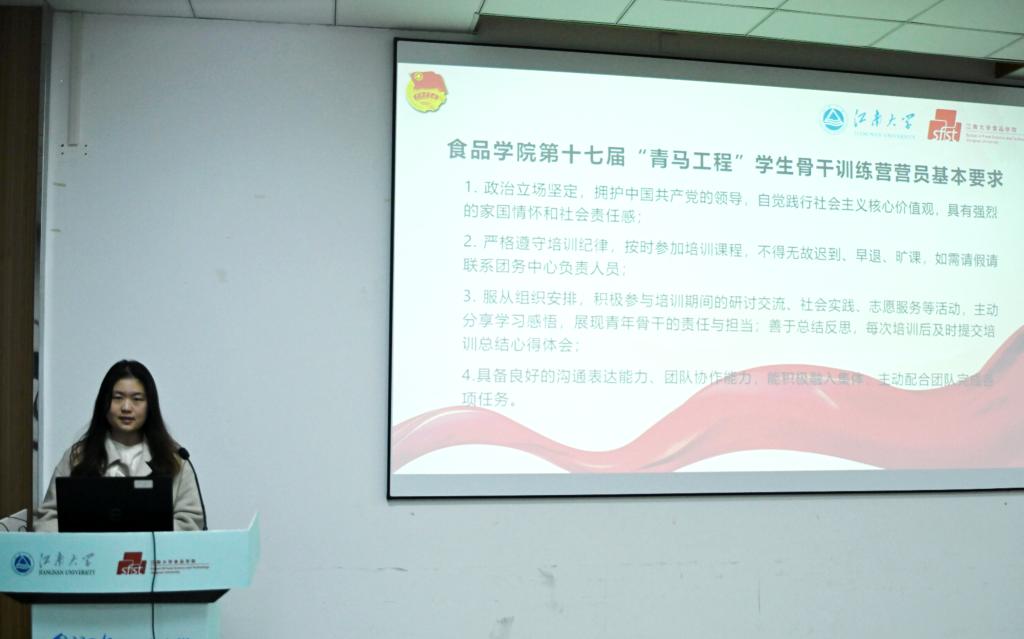 持续深化“青马工程”培养体系建设,围绕理论学习、政治素养、实践锻炼、能力拓展等模块开展系统化培训,着力锻造一批信仰坚定、能力突出、作风扎实、勇于奉献的青年学生骨干,引领广大食品学子将个人成长融入时代洪流,为实现中华民族伟大复兴注入蓬勃青春动能!