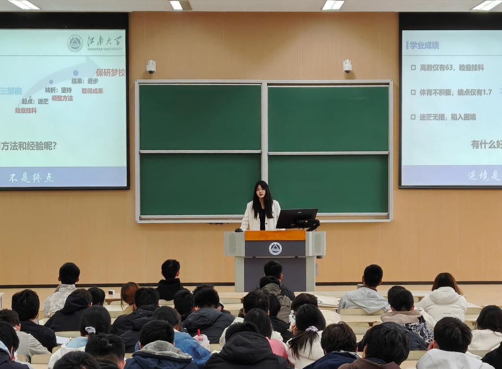 教务办梅俊俊围绕评奖评优、绩点计算、综测评定等学业核心政策展开系统解读,开展学业指导专题讲座,演示“e江南”App实操技巧;2025级本科生辅导员穆元炜详细讲解推免规则与申请要点,精准解答新生的学业规划困惑。